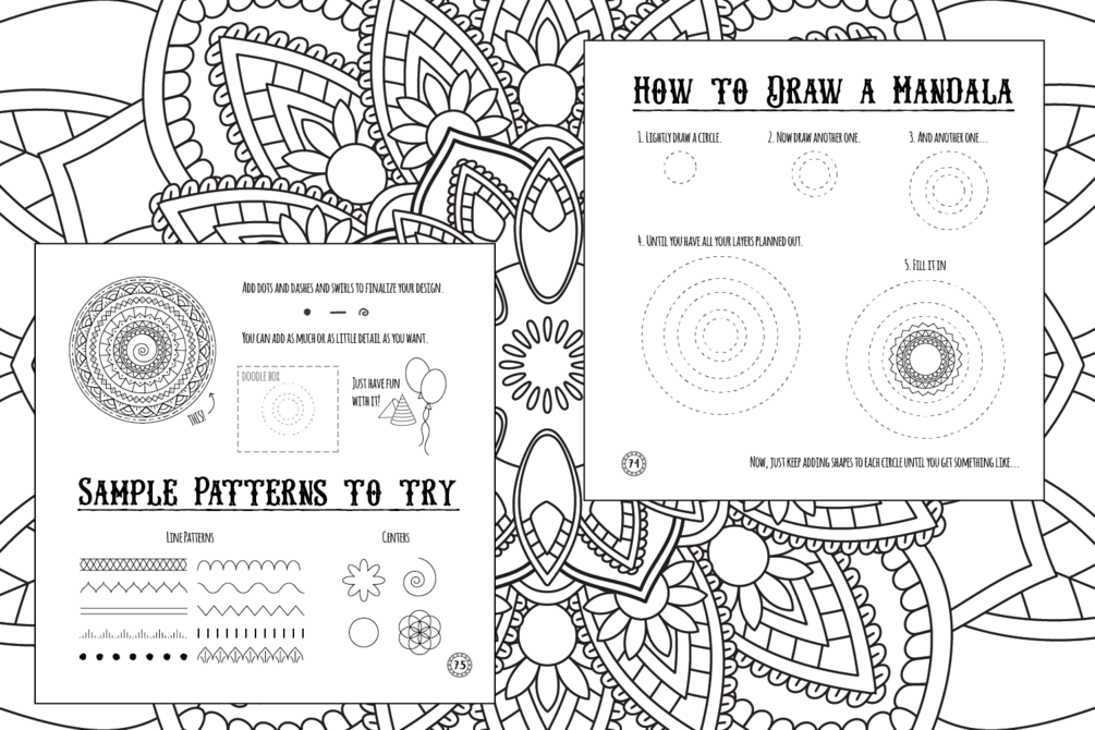 Also included are instructions for drawing your own mandalas, and a template to practice on.